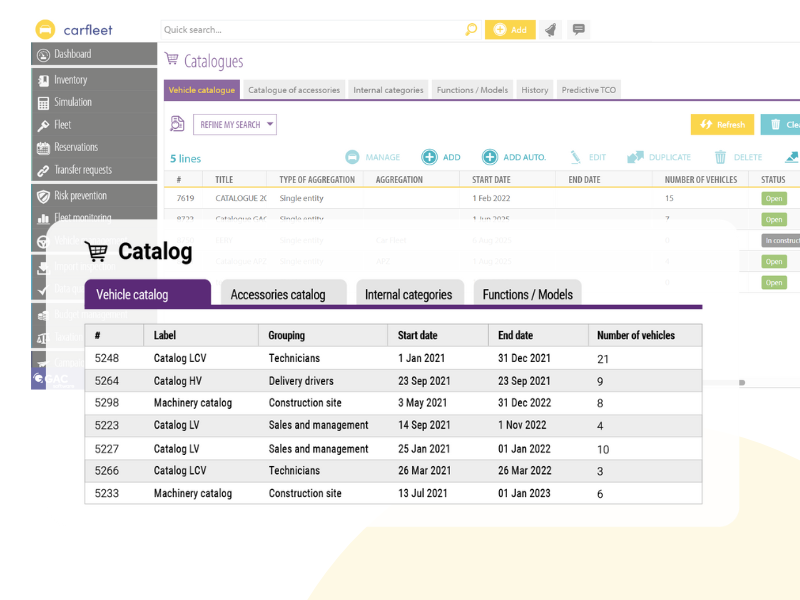 - Organisation von Flottenfahrzeugen: Verwaltung von Anfragen, integrierte Zeitplanung, Verfügbarkeit in Echtzeit.