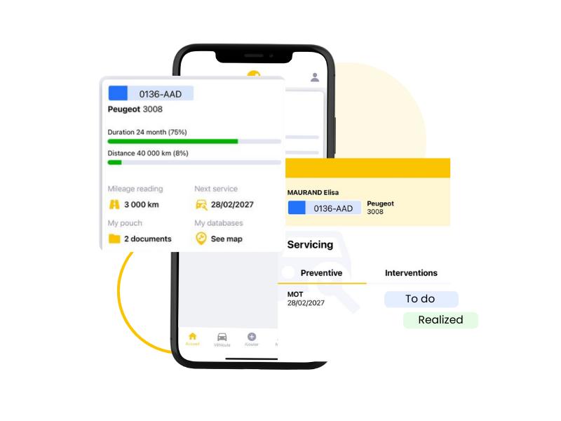 registratie, kilometerstand, type contract, komende onderhoudsbeurten, voor een perfect gecontroleerd beheer.