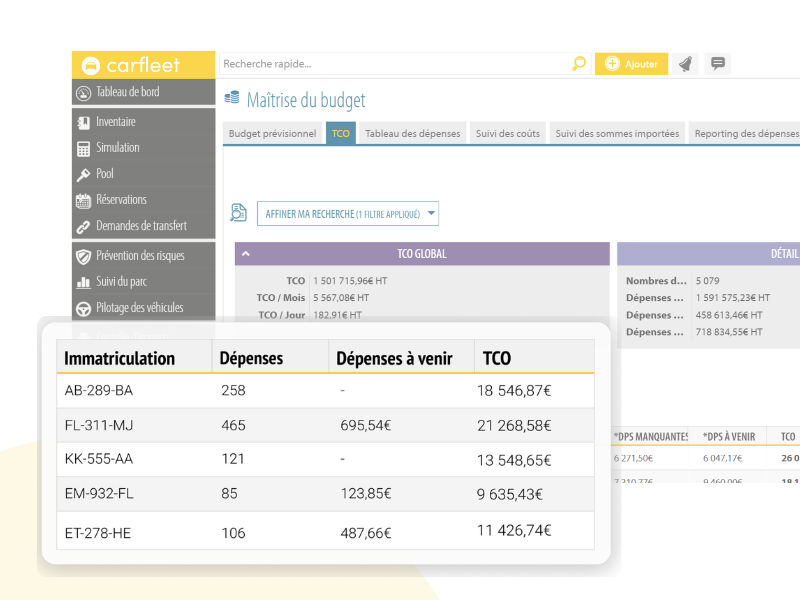 - Un pilotage budgétaire affiné : suivi du TCO, PRK, amortissements, taxes… pour mieux maîtriser chaque dépense.