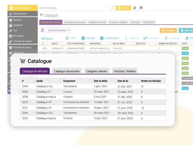 - Une vision globale et instantanée de votre flotte : statut des véhicules, affectations, kilométrages, entretiens, tout est à portée de main.