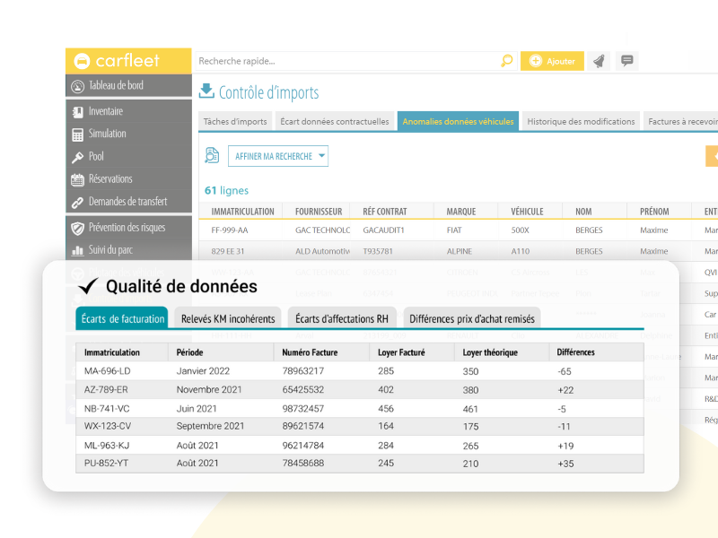 - Suivi des imports fournisseurs : assurance, location, carburant, maintenance…
